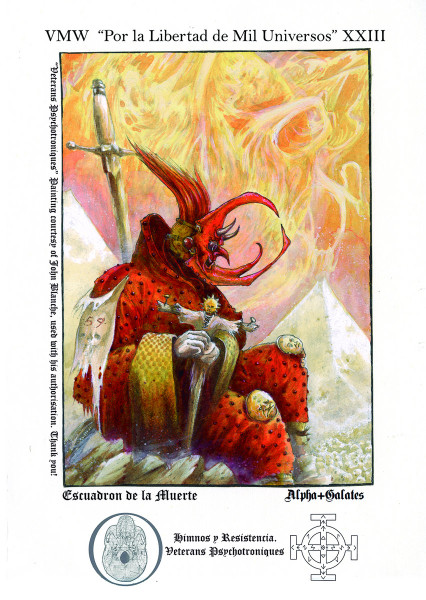 Los proyectos Escuadrón de la Muerte y Alpha+Galates unen sus fuerzas para compartir un trabajo altamente incendiario. Puro power electronics, salvaje e hiriente, no apto para todos los oídos. «Himnos y Resistencia. Veterans Psychotroniques” ha sido editado por Marbre Negre.