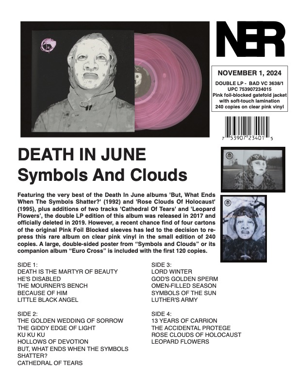 Death in June es para muchos de nosotros mucho más que un referente de la música independiente. Dos de sus discos más laureados de la década de los noventa, ‘But, What Ends When The Symbols Shatter?‘ (1992) y ‘Rose Clouds Of Holocaust‘ (1995) fueron parcialmente fusionados en un lanzamiento doble bajo el título ‘Symbols And Clouds‘ en 2017 que recoge gran parte de los cortes pertenecientes a estas obras maestras. La tirada inicial no tardó en agotarse; pero ahora, por caprichos del destino, se ha decidido repensar una limitadísima edición en vinilo trasparente de color rosa. Hablamos con Douglas P., líder del proyecto, para que nos cuente el cómo y el porqué de todo esto.