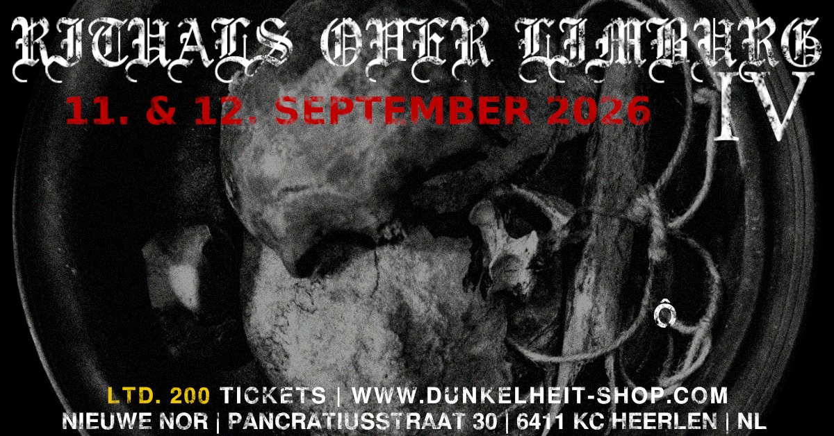 Dunkelheit Produktionen se encarga de seleccionar un impecable elenco de artistas de todos los puntos del planeta relacionados con los sonidos ritual, industrial y ambient ocultista. Una oportunidad única para experimentar y sentir estas invocaciones en primera persona. A continuación te dejamos el link para adquirir las entradas: https://www.dunkelheit-produktionen.de/presta/es/